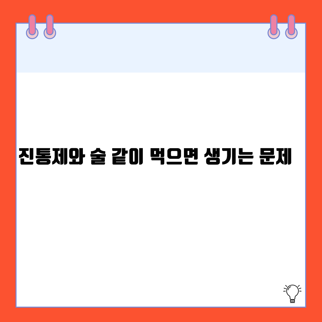 - 진통제와 술을 같이 먹으면 간 손상이나 위출혈 같은 심각한 부작용이 생길 수 있습니다.